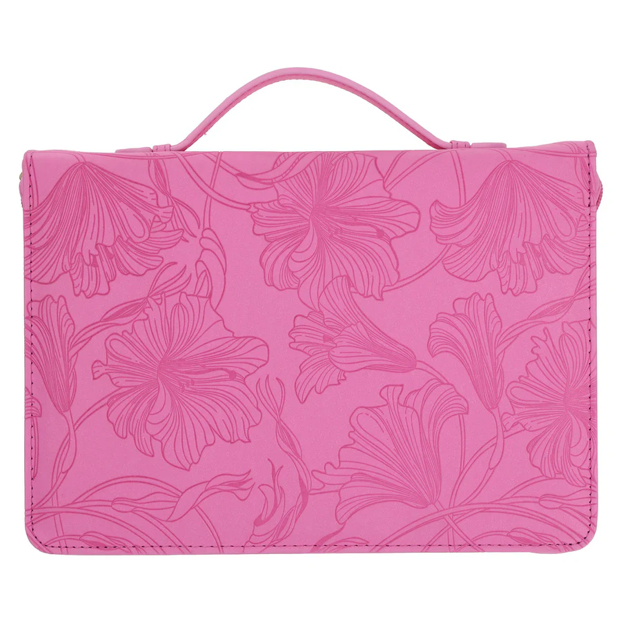 Store your Bible inside this protective Strength and Dignity Faux Leather Bible Bag, and let the message it bears fill your heart with encouragement.